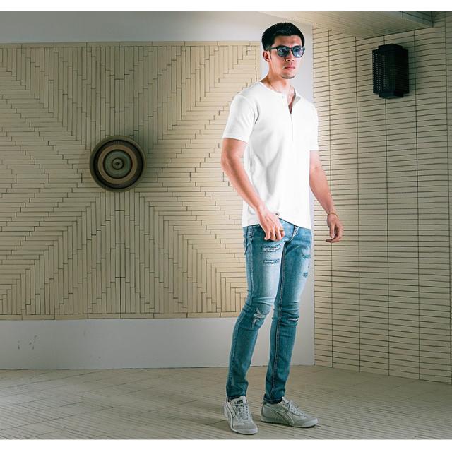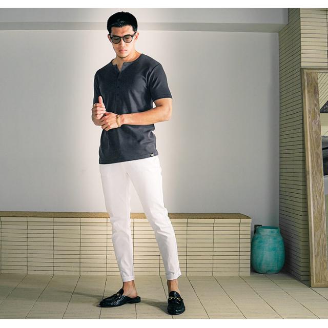 ヘンリーネック 半袖Tシャツ メンズ タイト tシャツ メンズ Tシャツ メンズ 半袖Tシャツ 無地 細身 Tシャツ 細い スリム Tシャツ メンズ 白Tシャツ Tシャツ メンズ カットソー 夏 夏服 夏物 春夏 メンズファッション ちょいワル