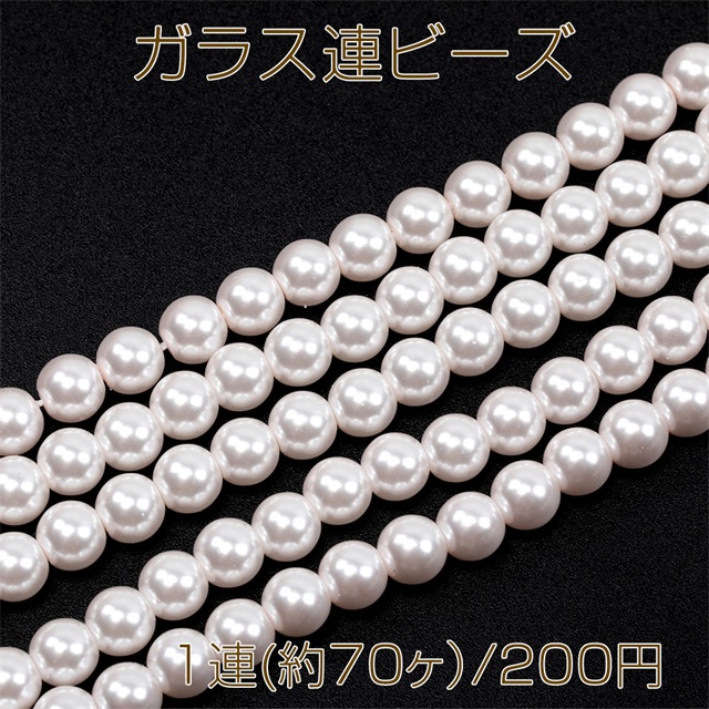 ガラス連ビーズ パール調 丸玉 6mm ホワイト 光沢感 パールビーズ ネックレス ブレスレット制作におすすめ (約70ヶ)