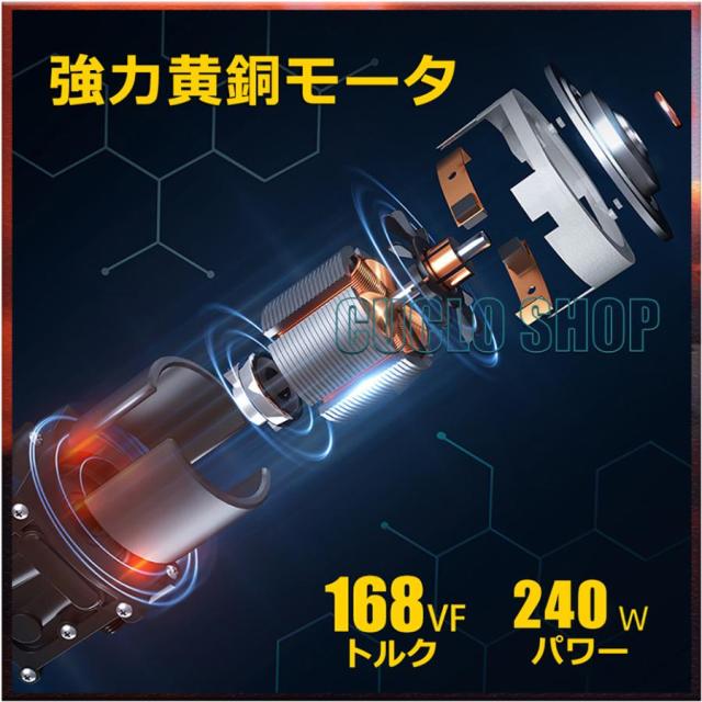 12,000rpm、200wの高出力・高耐久モーターユニット搭載。 バッテリーは容量5,600mAh、電圧24Vでコードレスでもハイパワーが長時間持続。