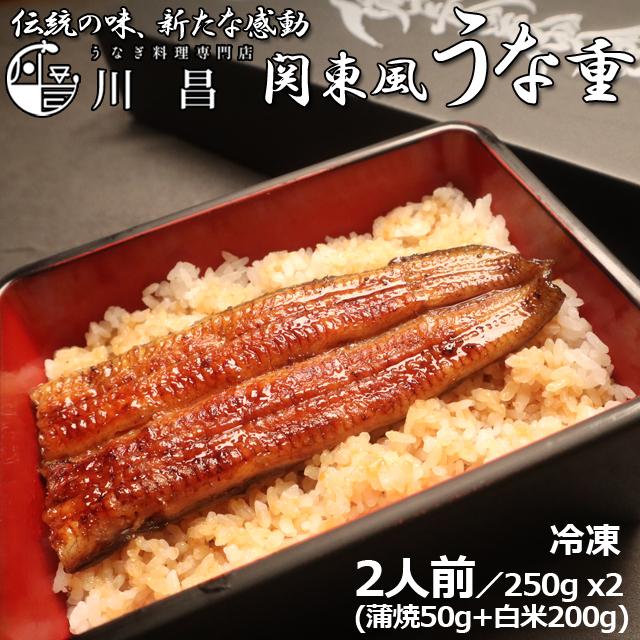 土用の丑の日 うなぎ専門店「川昌」関東風うな重 2人前 鰻重 ご飯付き 250gx2 国産うなぎ ニホンウナギ 新潟県産コシヒカリ ふわふわ関東風 冷凍 クール便