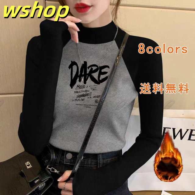 家中時間充実化 毎日使える便利品 下着 ハーフタートルネック アンダーシャツ 今だけ 英字 レディース 】インナーtシャツ レビュー高評価 トップス 長袖tシャツ 肌着 ラグランスリーブ 【wshop インナー 長袖 収納便利 厚手 保温 数量限定入荷