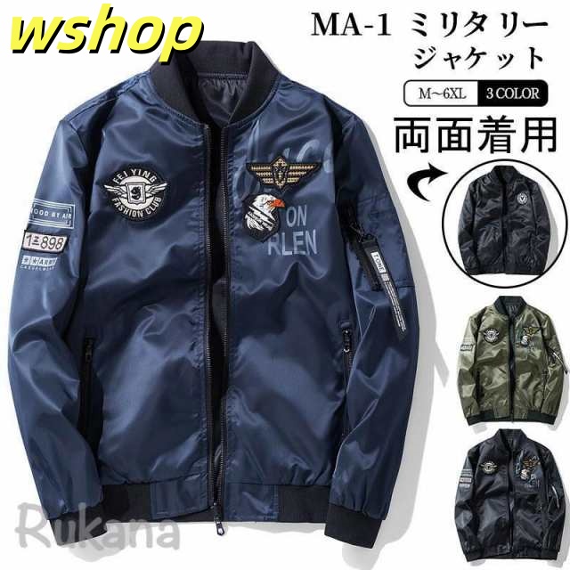 季節限定アイテム 毎日使える便利品 ブルゾン 防寒 ミリタリージャケット 防風 話題商品 今だけ 】フライトジャケット 売上急増中 中綿入り オシャレ メンズ 立ち襟 【wshop ジャンパー アウターカジュアル バイクコート MA-1 刺繍 数量限定入荷
