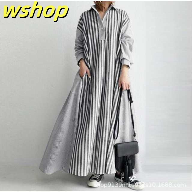 家中時間充実化 ギフトにも最適 売上急増中 春 レディース ワンピース ゆったり 】シャツワンピース 【wshop 40代 ストライプ柄 ロングワンピース 体型カバー 超ロング 在庫わずか ロング丈 マキシ丈 秋 長袖 新登場 秋冬 即納対応中