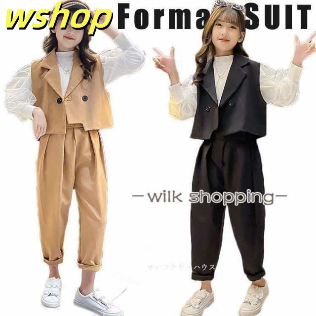 家中時間充実化 店長太鼓判 卒業式 】パンツスーツ ベスト フォーマルスーツ ピアノ発表会 売上急増中 女の子 120 【wshop 子供スーツ パンツスーツ ブラック Tシャツ セットアップ パンツ 送料無料 カーキ 収納便利 170 入学式 送料無料実施中