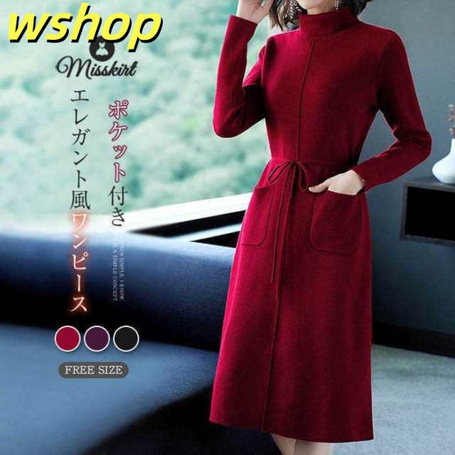 秋の新作特集 品質安心 ワンピ 長袖 冬 ロング ウエストマーク レディース プルオーバー ランキング常連 秋 】ワンピース ニットワンピース おしゃれ 今だけ 無地 人気急上昇 ポケット付き タートルネック ウエストリボン 【wshop 送料無料実施中
