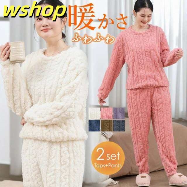 レビュー高評価商品 ギフトにも最適 セットアップ 人気急上昇 】ルームウェア パジャマ 在庫わずか 上下セット 長袖 寝間着 【wshop リラックス セット レディース 部屋着 ロングパンツ 暖か 冬 モールニット ランキング常連 可愛い 暖かい あったか 即納対応中