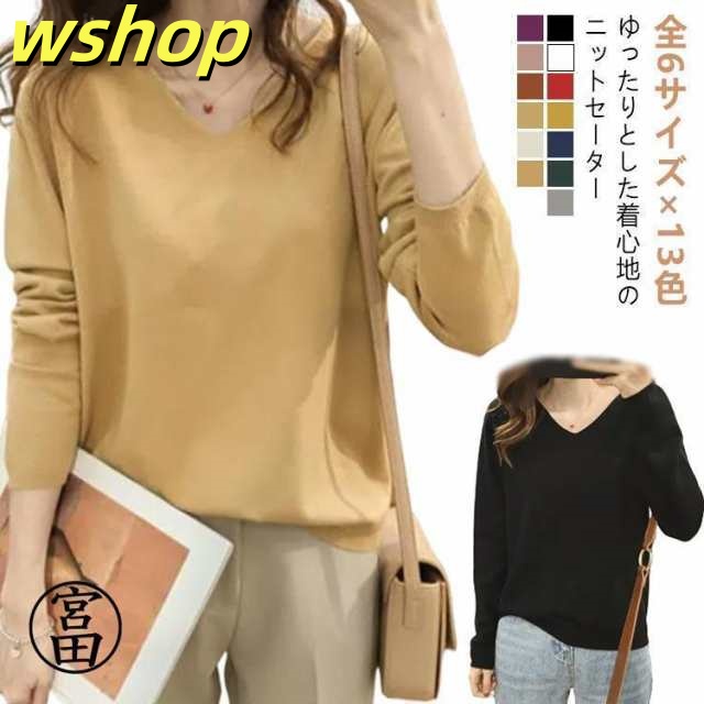 家中時間充実化 ギフトにも最適 無地 トップス Vネック 【wshop 通学 秋 チュニック M/L/LL/3L 冬 新登場 薄手 春 通勤 】ニット カ レディース 長袖 送料無料 ニットセーター レビュー高評価 数量限定入荷