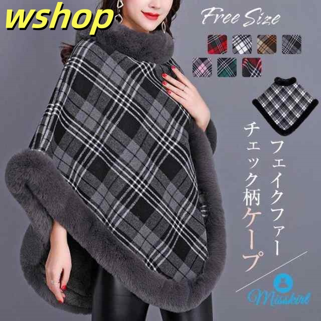 季節限定アイテム 多機能デザイン ふわふわ 】毛皮コート 毛皮 ケープ ポンチョ フェイクファー ショール ス 毛皮ストール チェック柄 マントコートショール ランキング常連 【wshop コート 裏起毛あり 送料無料 アウター レディース 即納OK お買い得プライス