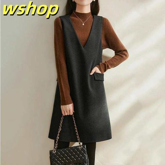 在庫限りの大特価 品質安心 きれいめ レディース ワンピース Vネック 大人 ジャンスカ 秋冬 【wshop ノースリーブ 】ウール混 膝丈 タンクワンピース Aライン フレ 今だけ レビュー高評価 ひざ丈 ジャンパースカート 軽量仕様 ワンピ お買い得プライス