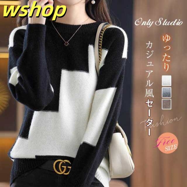 在庫限りの大特価 品質安心 冬 レディース 上着 SNS話題 おしゃれ ラウンドネック 】セーター トップス ニット 長袖 軽量仕様 配色 【wshop プルオーバー 秋 カットソー 新作 ゆったり 無地 ベーシック 送料無料 ニットセーター お買い得プライス