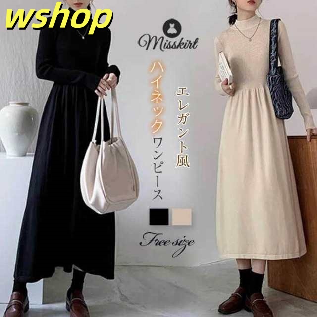 在庫限りの大特価 品質安心 セーターワンピース ハーフネック 長袖 セーター 新登場 厚手 無地 今だけ ハイウエス ワンピース ワンピ 】ニット ロング 売上急増中 【wshop プルオーバー ニットワンピース レディース エレガント 即納対応中