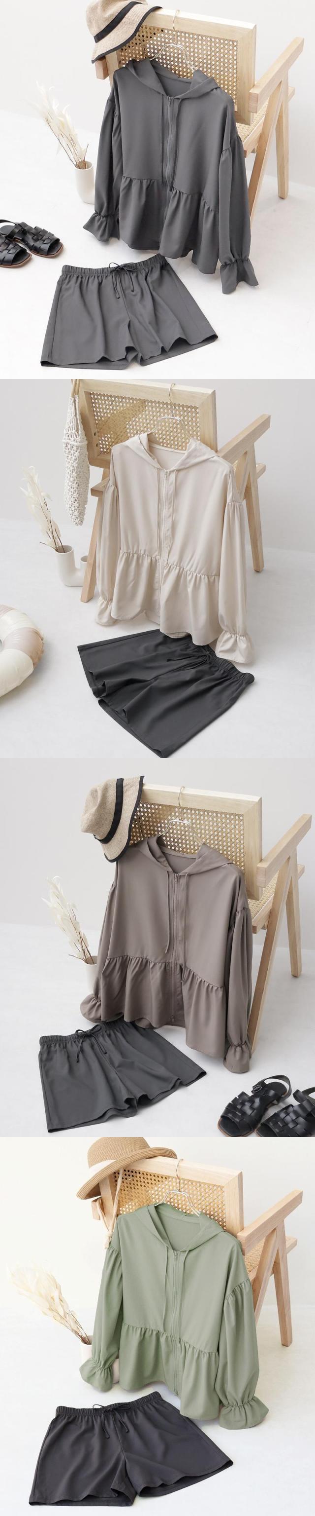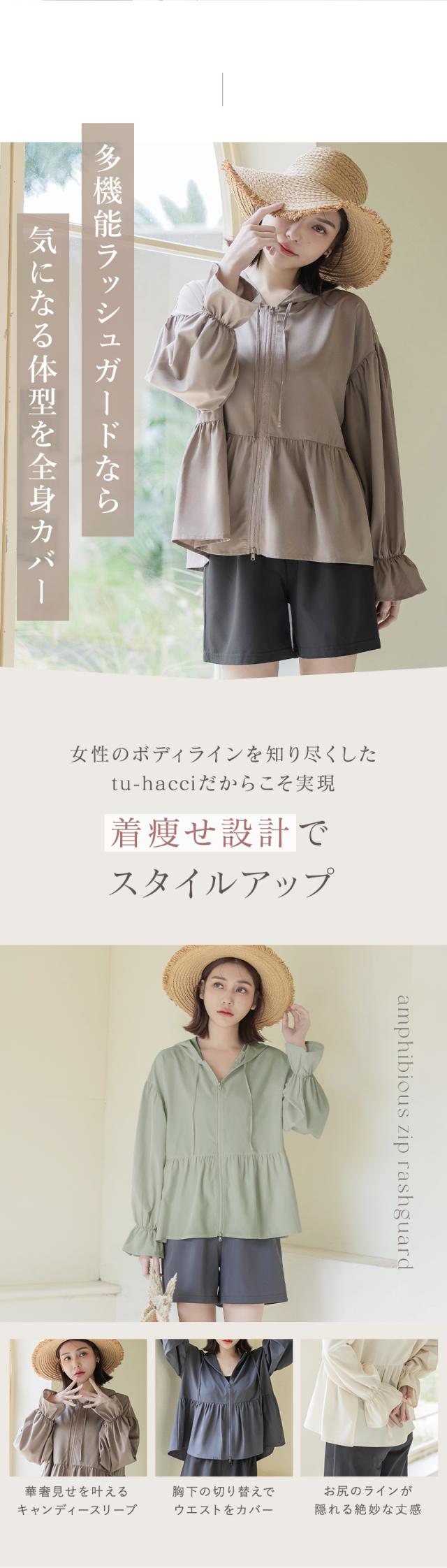 【待望のジップタイプ】UV対策 水陸両用 フリル ラッシュガード ジップパーカー&ショートパンツセット 着る日焼け止め 日焼け防止 水着 レディース フード付き 長袖 速乾 ママ水着 体型カバー 二の腕 お尻 太もも カバー 露出控えめ ツーハッチ tu-hacci 母の日_fk