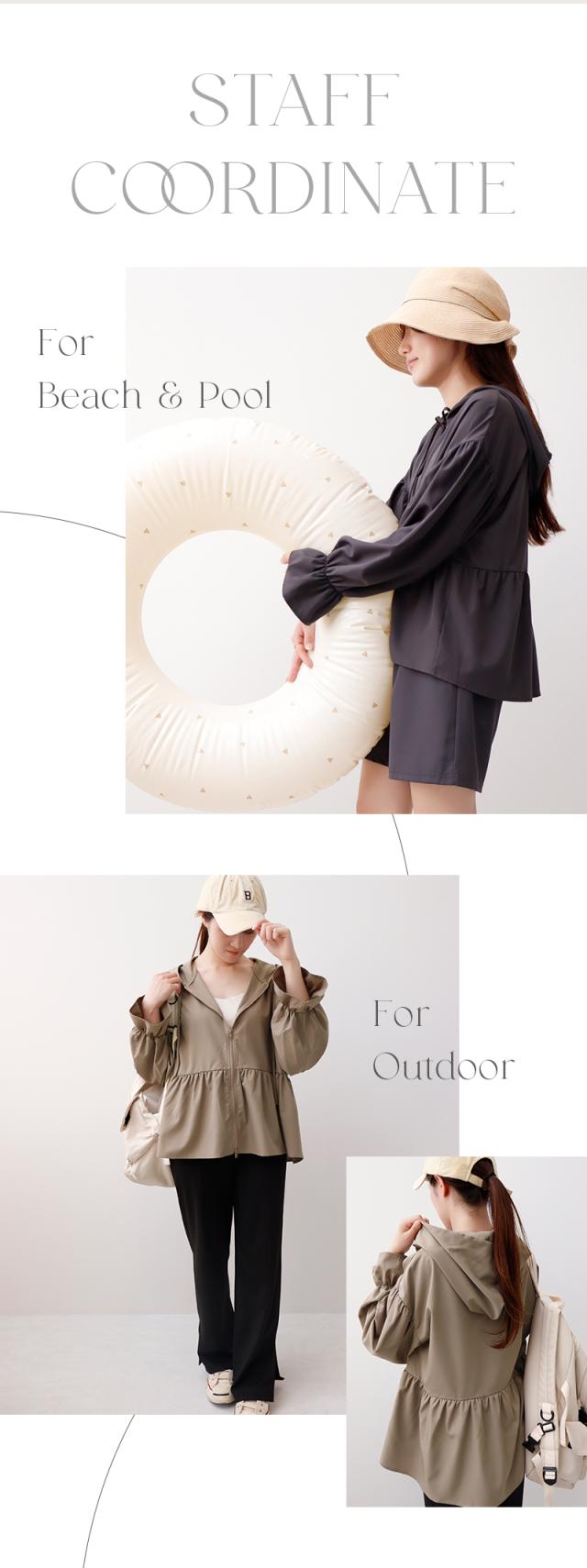 tu-hacci rash guard Collection ラッシュガード&パンツ / 計2点セット 着回ししやすく、様々なシーンで大活躍!華奢見えラッシュガード。 スタイリッシュさと多機能が融合した究極の一着。 2way仕様のトレンド感あるデザインで、軽い運動やデイリーウェアにも◎ やわらかな素材が快適な着心地を提供し、UVカット機能で肌をしっかりガード。 汗をかいてもサラッと快適な接触冷感で、蒸し暑い季節もより蒸れにくく快適に。 肩落ちシルエットで華奢見えが叶い、ワンポイントのリボンで上品さをプラス。 バックスタイルも計算された絶妙な丈感でどこから見ても美しいシルエットに。 フロントジップだから、さっと羽織れてメイクや髪も崩れにくい◎ 前開きのボタンは片手でサッと簡単に開閉でき、授乳中のママにもおすすめ。 お揃いショートパンツは、涼しくてふんわりとしたシルエットでヒップラインを拾いにくい仕様に。 ウエストはゴム+紐付きで、快適な着心地と脱げにくくて安心のフィット感を実現。 スマートフォンがすっぽり収まるサイズのポケット付きだから、持ち運びにも便利◎ ≫ ラッシュガードシリーズはこちら ≪ |