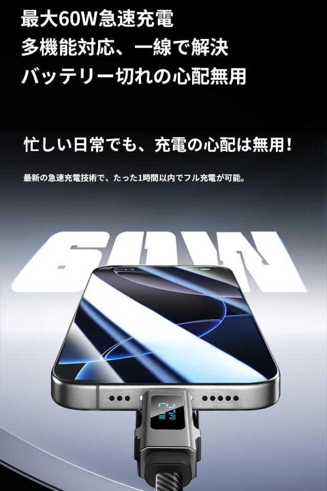 【2026最新】4in1ケーブル 長さ1.5m Type-C to Type-Cケーブル iPhone17 充電ケーブル Type-C/iPhone/USB-A 急速充電 PD規格 マルチケーブル 断線に強い USB2.0 データ転送 iOS Android 多機種対応 高耐久 コンパクト iPad充電 正規充電器対応【PL保険加入済み製品・安心】