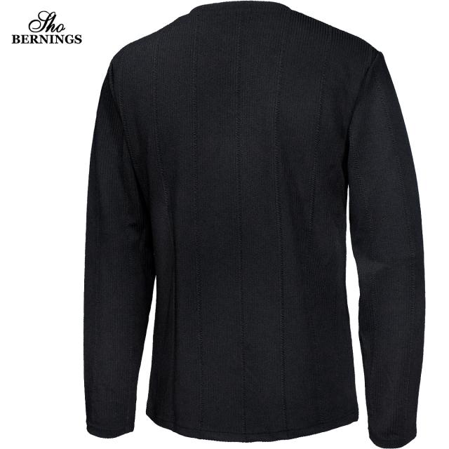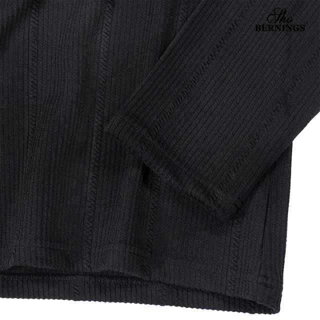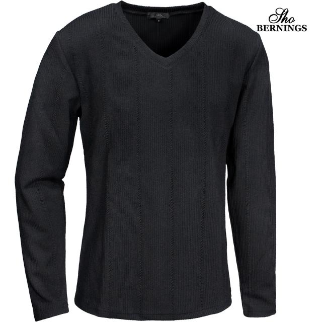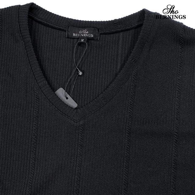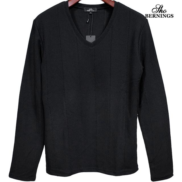 Tシャツ 長袖 Vネック ストライプ柄 ジャガード メンズ シンプル ロンT(ブラック黒) 360753
