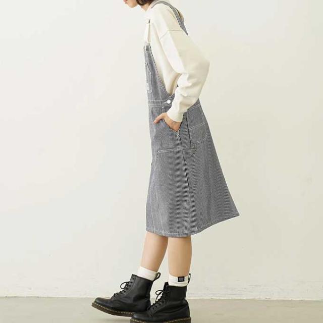 ワークパンツのディテールを落とし込んだ、デザインが新鮮なサロペットスカート。