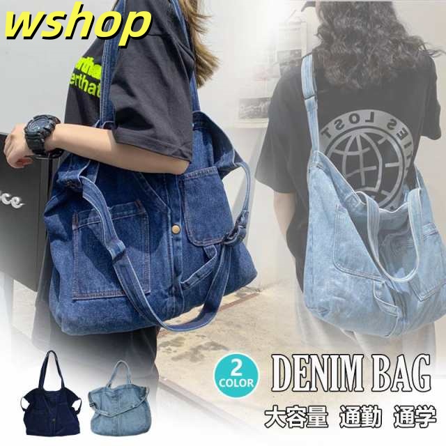 レビュー高評価商品 店長太鼓判 送料無料 売上急増中 即納OK お出かけ 【wshop バッグ 旅行バッグ デニムトートバッグ レディースバッグ 2wayショルダーバッグ 】デニムバッグ 通学 通勤 男女兼用 即納対応中