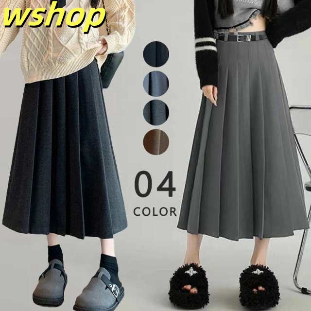 季節限定アイテム 品質安心 秋服 着痩せ 在庫わずか 着回し レディース 厚手 SNS話題 秋冬 】ラシャスカート ロングスカート 女子高生 制服スカート 収納便利 フレア プリーツスカート スクルスカート 【wshop ベルト付き Aライン 送料無料実施中