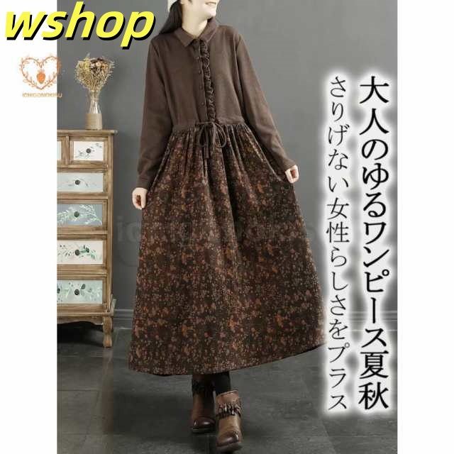 生活快適特集 多機能デザイン 話題商品 】秋ドッキングワンピース長袖 夏秋 マキシワンピース レビュー高評価 今だけ ロングワンピース プリントドッキングワンピース大人 【wshop 秋服 40代50代 カジュアルワンピース印花 気質 送料無料実施中