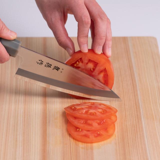 刀身には切れ味抜群のステンレス刃物鋼を使用しています。形を崩しやすい食材も、スパッと美しい断面でカットできます。