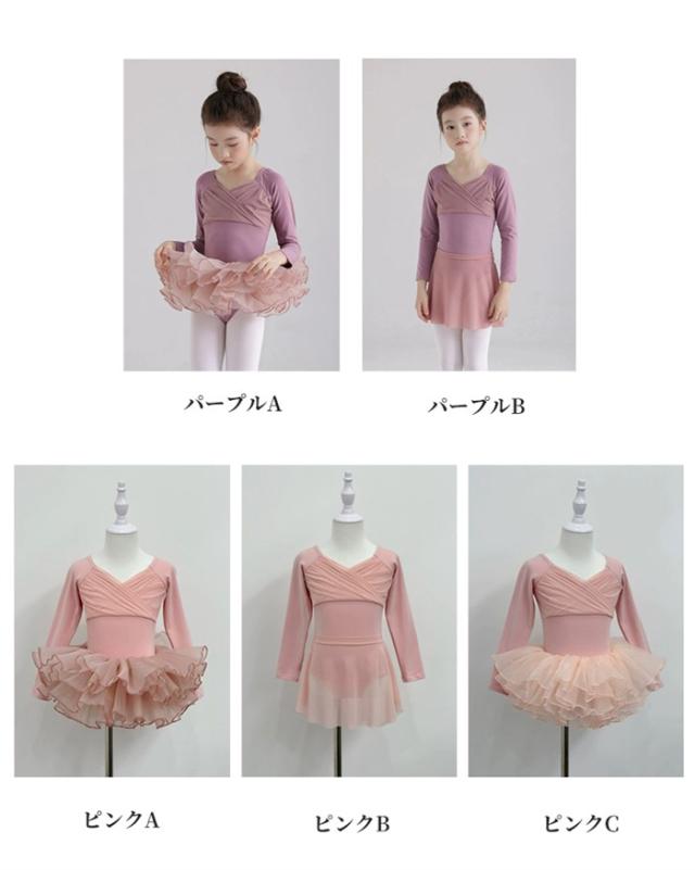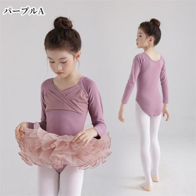 バレエ レオタード スカート付き バレエレオタード 女の子 長袖 子供 子供用 子供サイズ キッズ ジュニア ダンス 体操 バレエ用品 新体操 練習服 レッスン着 ステージ衣装 発表会 バレリーナ 可愛い 練習 レッスン ピンク パープル ds456d7sam5