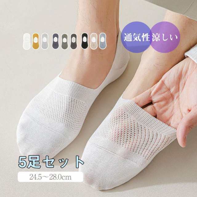 綿100% 靴下 メンズ ソックス シンプル メッシュ 滑り止め 通気性 涼しい ムレない 防臭 消臭 5足セット 隠れる 浅履き