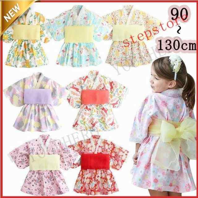 浴衣 子供 女の子 ワンピース帯 女の子 かわいい レトロ キッズ 浴衣 子ども 浴衣ドレス 兵児帯付 甚平ベビー服 長袖 チュニック子供 花柄