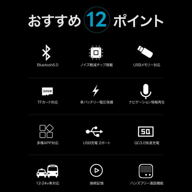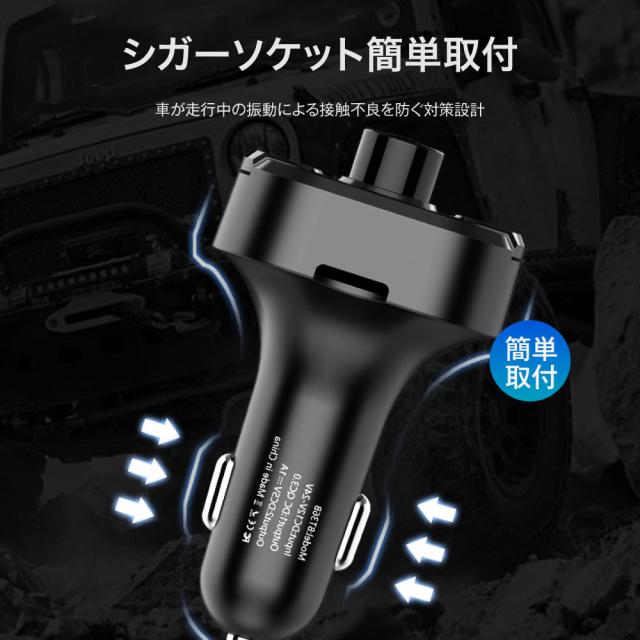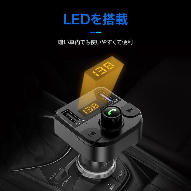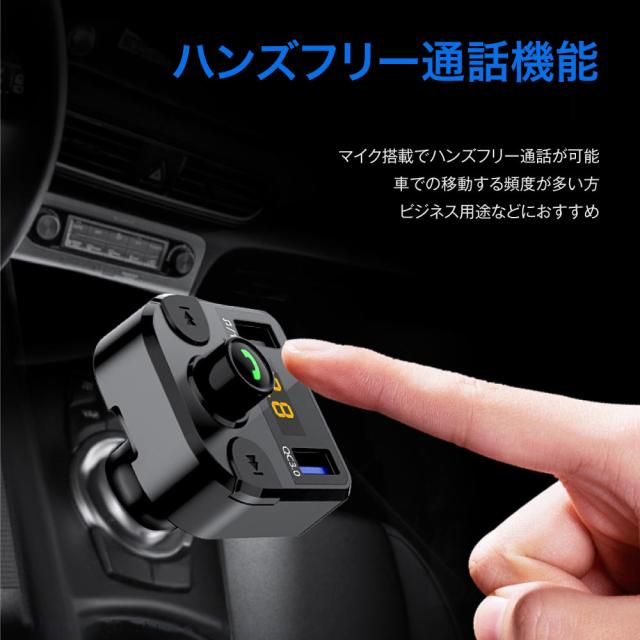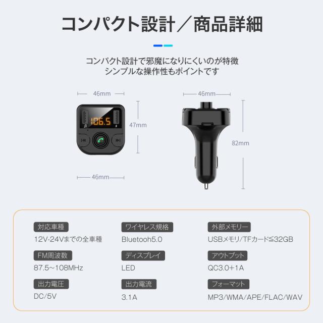 FMトランスミッター 車 Bluetooth5.0 12V 24V QC3.0急速充電 ノイズ軽減 2台同時充電 iPhone Android USBメモリ TFカード microSDカード ハンズフリー通話 高音質 無線 音楽再生 LED表示 fm36