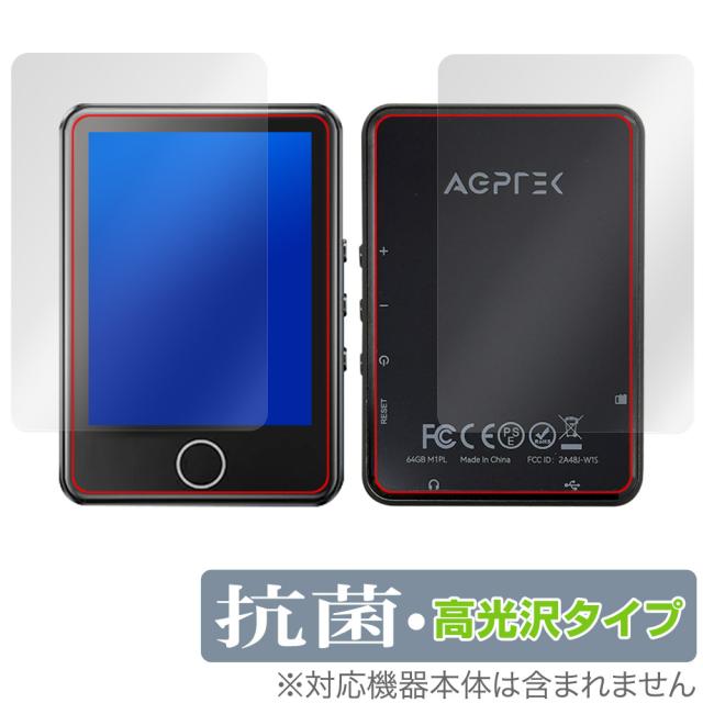AGPTEK M1PL 表面 背面 フィルム OverLay 抗菌 Brilliant for MP3プレーヤー 表面・背面セット Hydro Ag+ 抗菌 抗ウイルス 高光沢