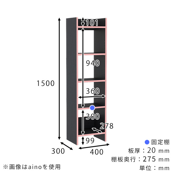 サイズ:約幅400 奥行300 高さ1500 mm(内 脚の高さ:99 mm)
