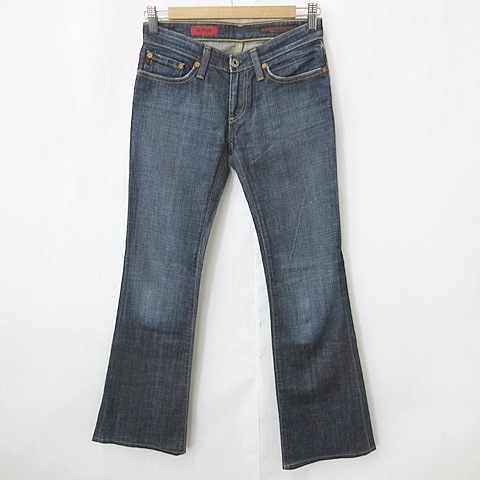 【中古】エージー AG デニム ジーンズ ブーツカット パンツ ロング丈 ストーン 豚革 インディゴ ブルー 23
