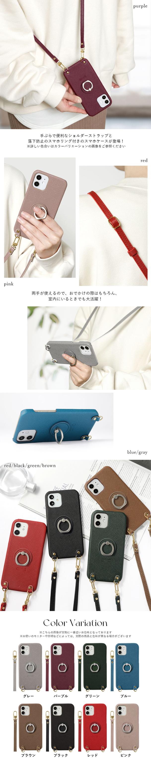 機種に合わせた専用ケースで操作スムーズ スマホリング×ショルダーストラップ付き