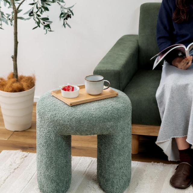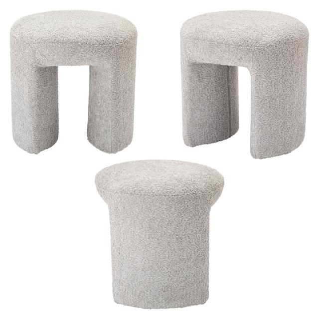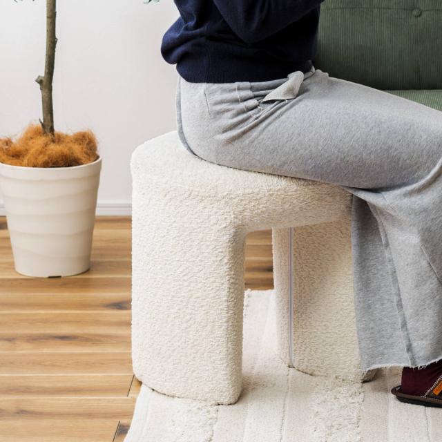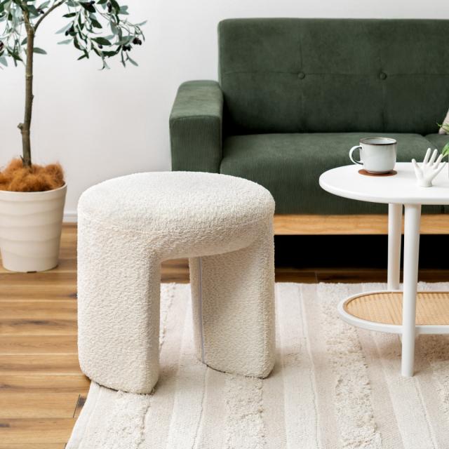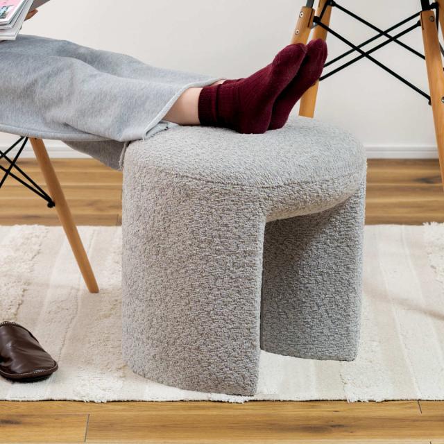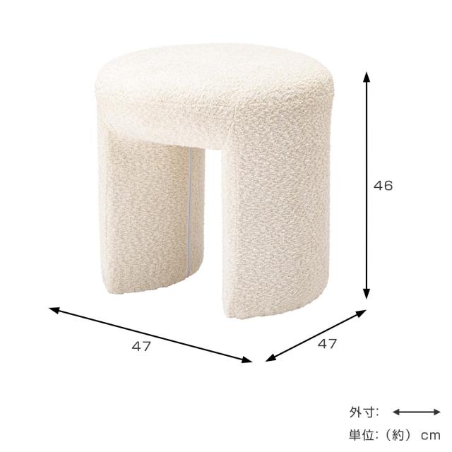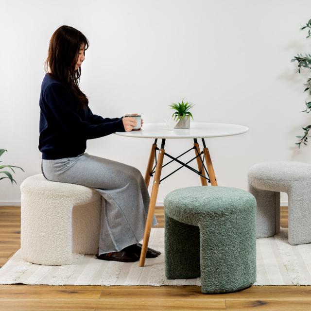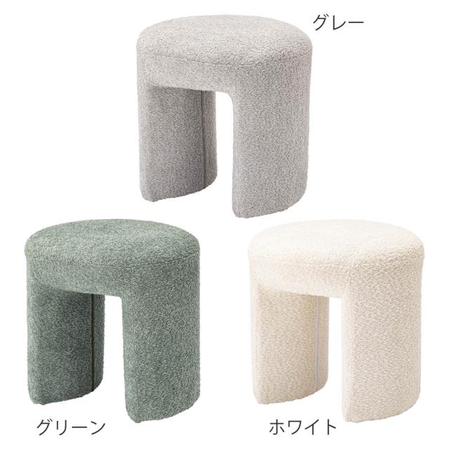 スツール 高さ46cm 座面丸型 ブークレ生地 ( 丸 ラウンド 円形 サブチェア 椅子 オットマン もこもこ 軽量 リビング 玄関 寝室 サイドテーブル グレー グリーン ホワイト )