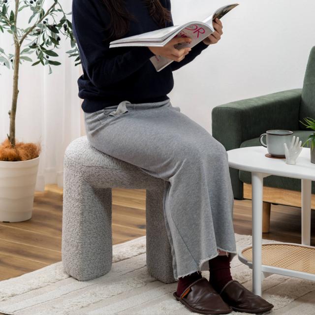 落ち着きのある優しい色合いのブークレ生地を使用しています。ふんわりもこもことした心地い良い質感と柔らかな肌触りが特徴的で、しっかりとした座り心地です。