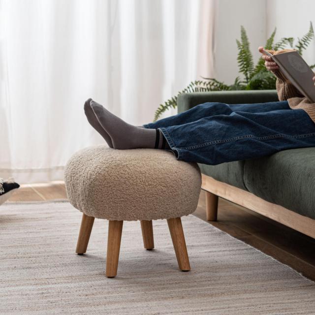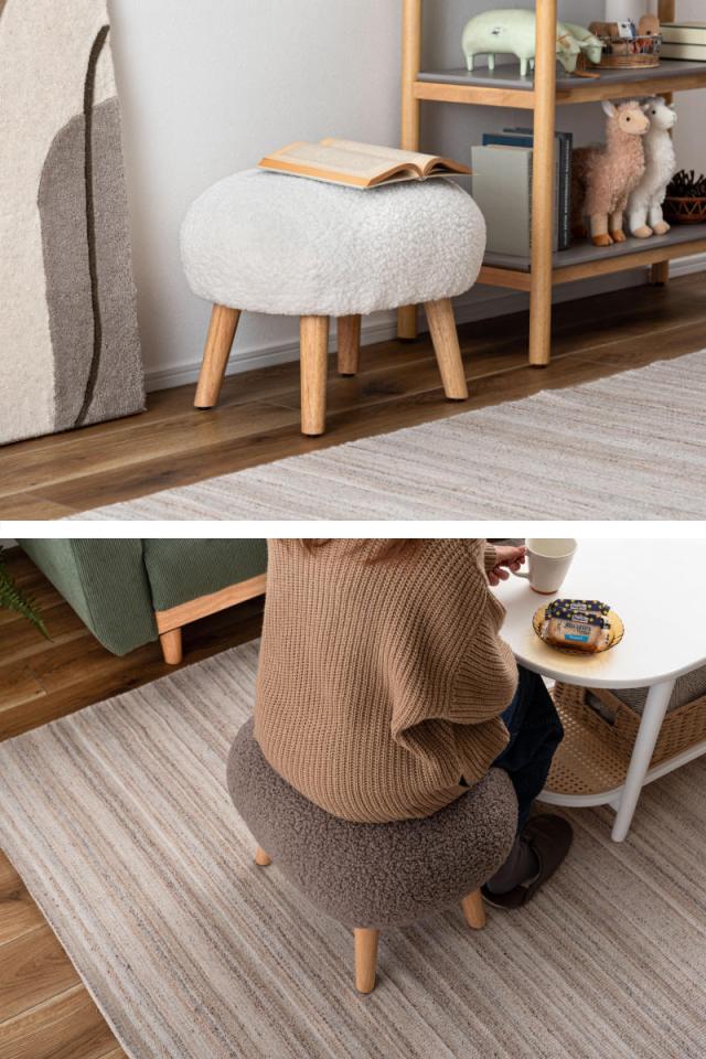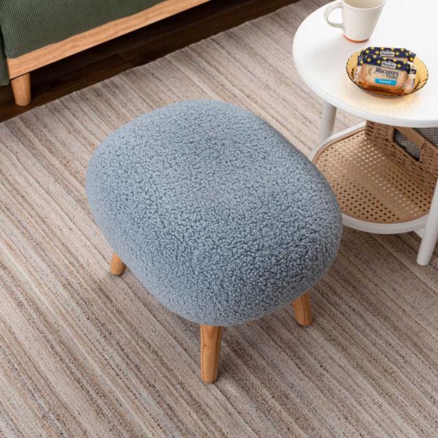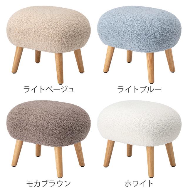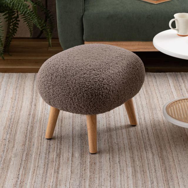 スツール 高さ38cm ブークレ生地 木脚 ( ロー 低い コンパクトサイズ 丸 ラウンド 円形 サブチェア 椅子 オットマン もこもこ 軽量 大人 子供 キッズチェア キッズ かわいい 玄関 リビング 寝室 子供部屋 キッズスペース )