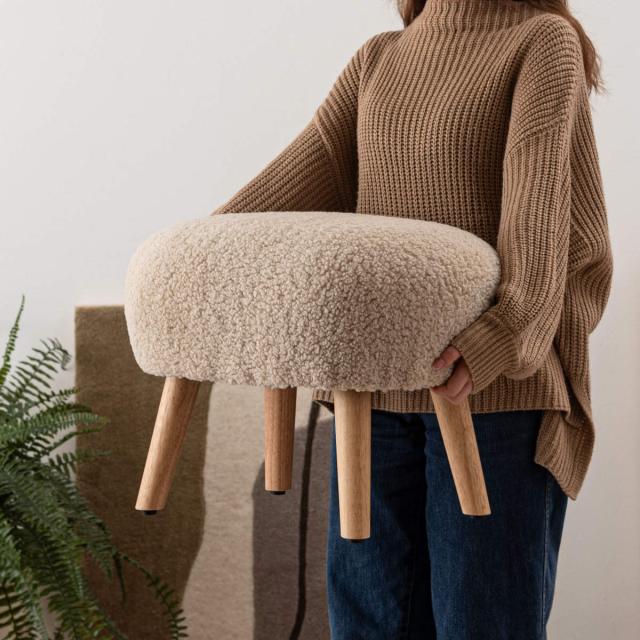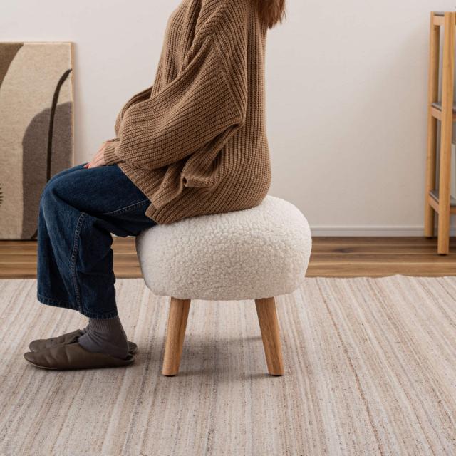 ころんと丸いフォルムが特徴的な可愛らしいスツールです。優しい色味のブークレ生地とナチュラルな木脚の組み合わせは、様々なお部屋に取り入れやすく、空間のアクセントにもなります。