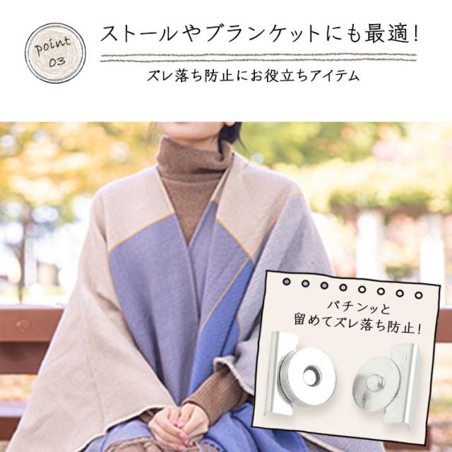マグネットの力でズレ落ちを防止。巻き物や薄手の羽織ものを留めるのにも便利!