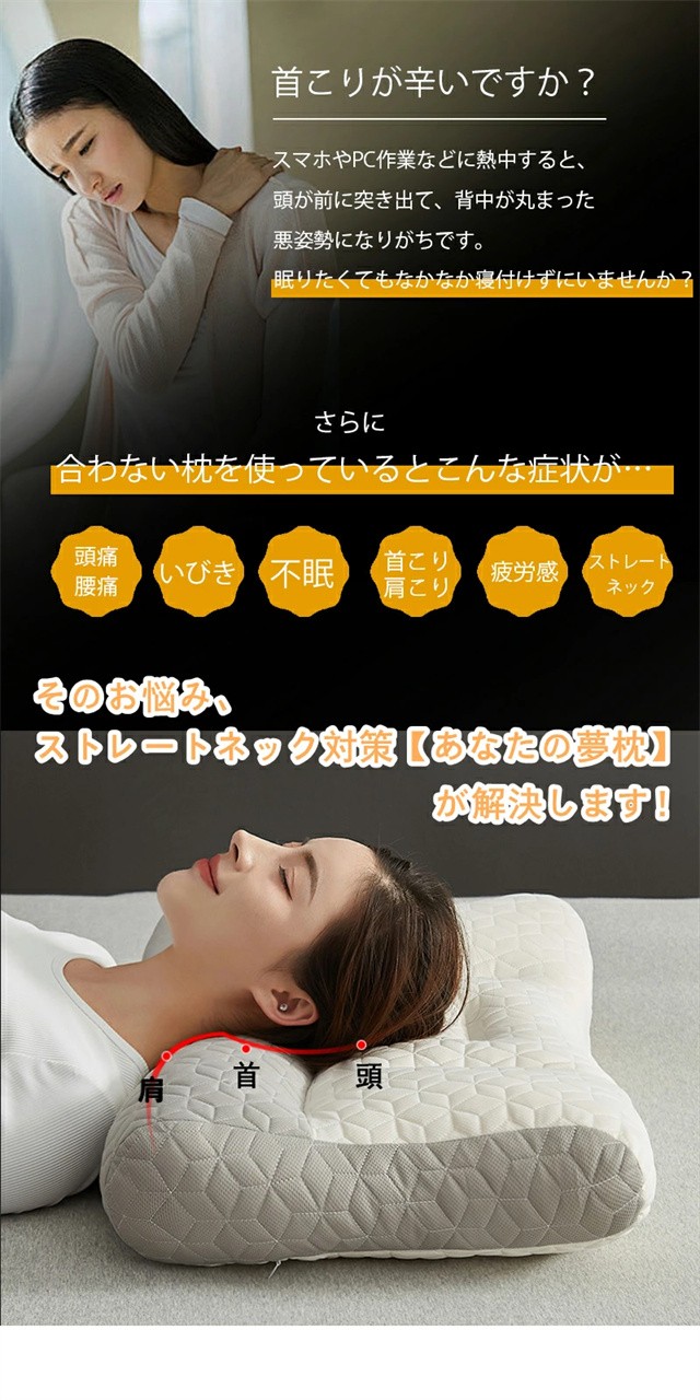夢枕 快眠枕 枕 肩こり 首こり まくら 低反発枕 ストレートネック サポート枕 いびき防止 プレゼント リラックス 頭痛 安眠 枕