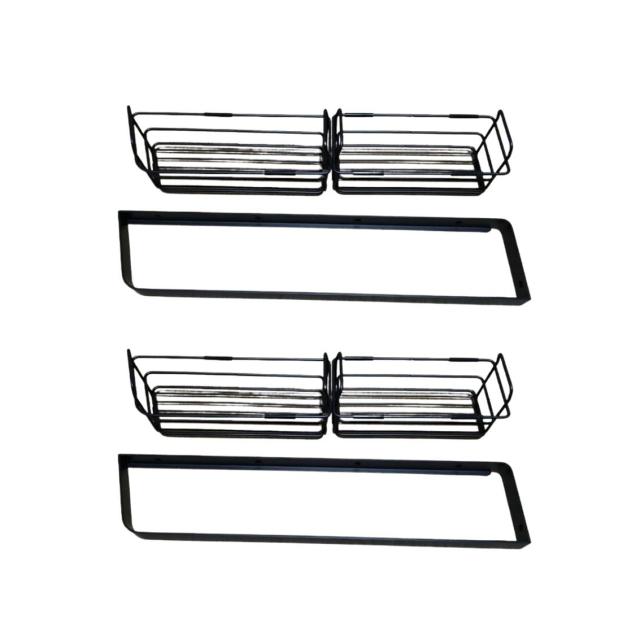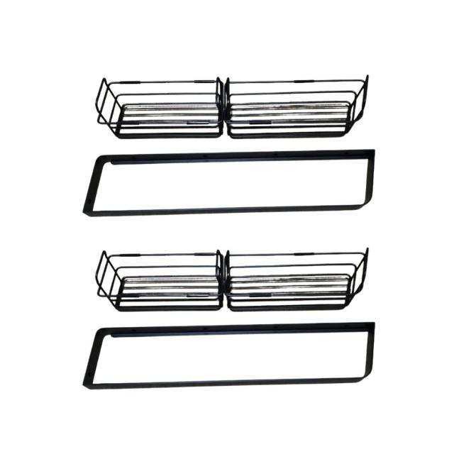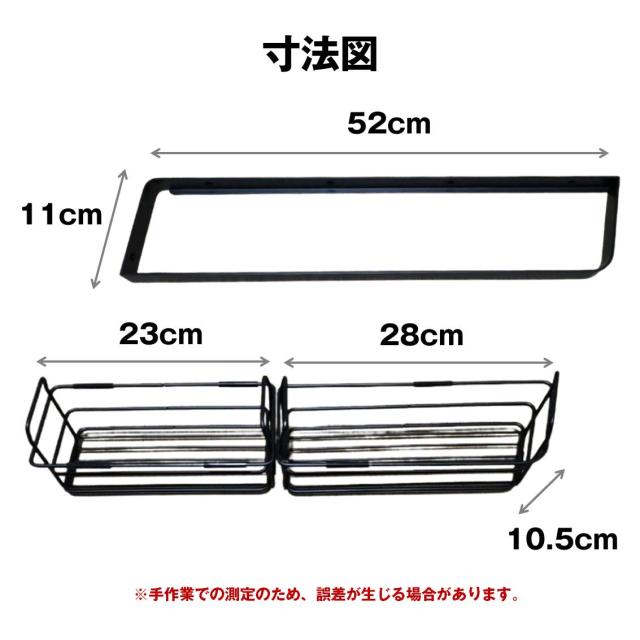 メタルバスケット 幅52cm 2セット シェルフ お風呂 浴室 シャンプーラック キッチン 調味料 収納 ステンレス 黒 ブラック 壁掛け 壁面固定 ネジ付 左右選べる