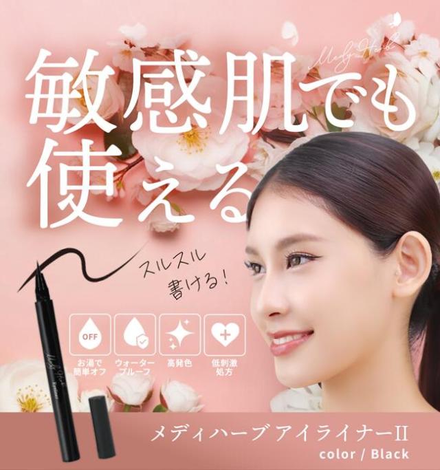 【送料無料】くれえる メディハーブ アイライナーII ブラック 130039| アイライン 自然 リキッド ウォータープルーフ 優しい ヨレない 保湿 敏感肌 乾燥肌 肌に優しい 汗に強い 敏感肌用化粧品 コスメ メイク アイメイク