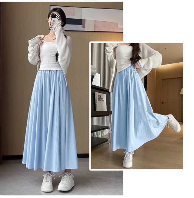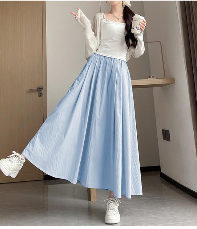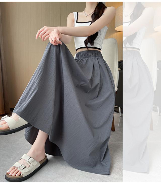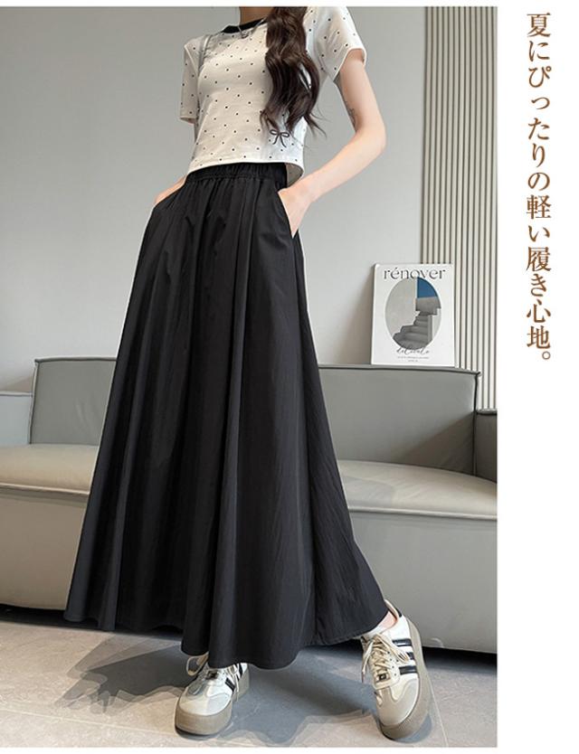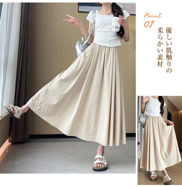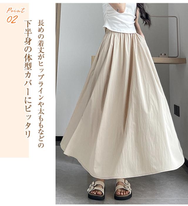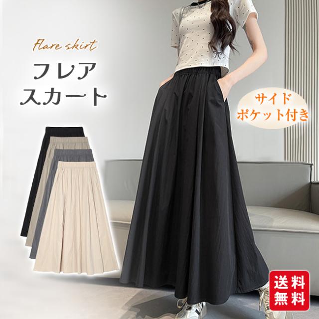 お買い物ラリー!29日9:59まで 春新作 フレアスカート ロングスカート ミモレスカート レディース 裏地なし ハイウエスト ウエストゴム 着痩せ Aライン 体型カバー 脚長効果 春 夏 秋 無地 カジュアル 大人かわいい ポイント消化 母の日 新生活