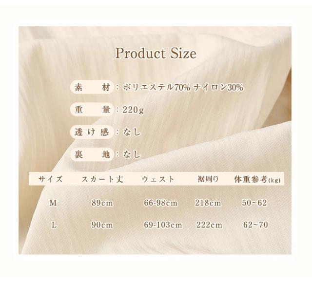 - 軽くて、ハリがありシャリシャリした感じの布地。イメージと違ってチャコール寄りの黒でした。写真のモデルさんが着ている様な、たっぷりのフレアーにはなっていなくて普通のギャザースカートでした(実裾幅101cm 表記は218cm)。お安く購入出来て嬉しかったけれど、フォルムが違いすぎてとても残念です。発送等は早かったです。