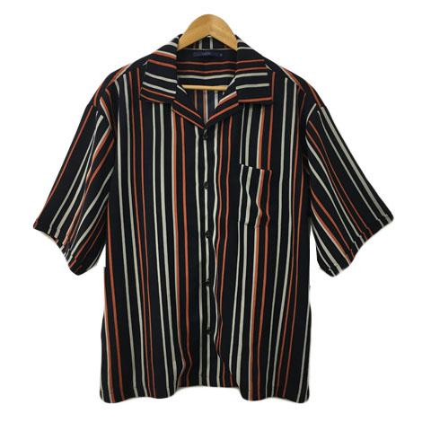 【中古】シーピーシーエム CPCM シャツ カジュアル オープンカラー ストライプ スリット 五分袖 L 黒 オレンジ
