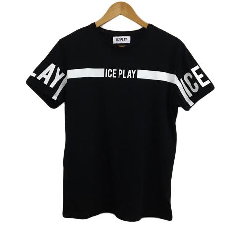 【中古】アイスプレイ Tシャツ ラウンドネック プリント ロゴ ライン 半袖 L 黒 白 ブラック ホワイト メンズ