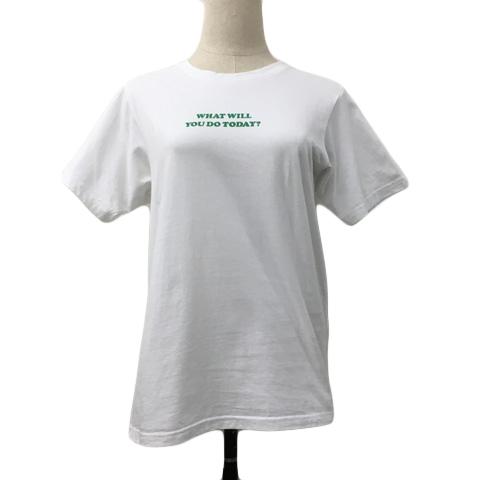 【中古】ロデオクラウンズ Tシャツ プルオーバー クルーネック プリント ロゴ 半袖 FREE 白 緑 ホワイト グリーン