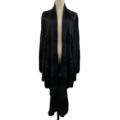 【中古】アリスオリビア カーディガン ニット ショールカラー ウール ボーダー スパンコール 長袖 黒 グレー
