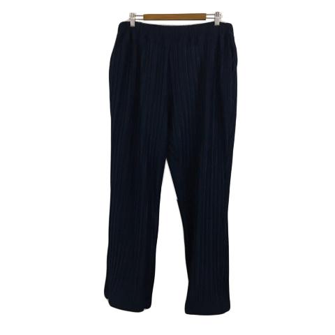 【中古】エマクローズ パンツ テーパード ロング プリーツ ウエストゴム イージー ドロスト 無地 L 紺 ネイビー