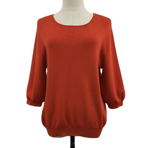 【中古】グローブ セーター ニット プルオーバー ラウンドネック 無地 五分袖 L 赤 オレンジ レッド レディース