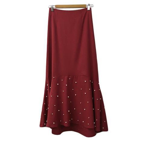 【中古】ジュリアブティック スカート フレア マーメイド ロング ウエストゴム パール 無地 赤 レッド レディース