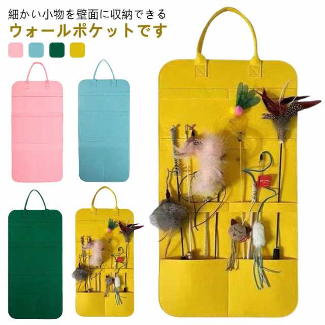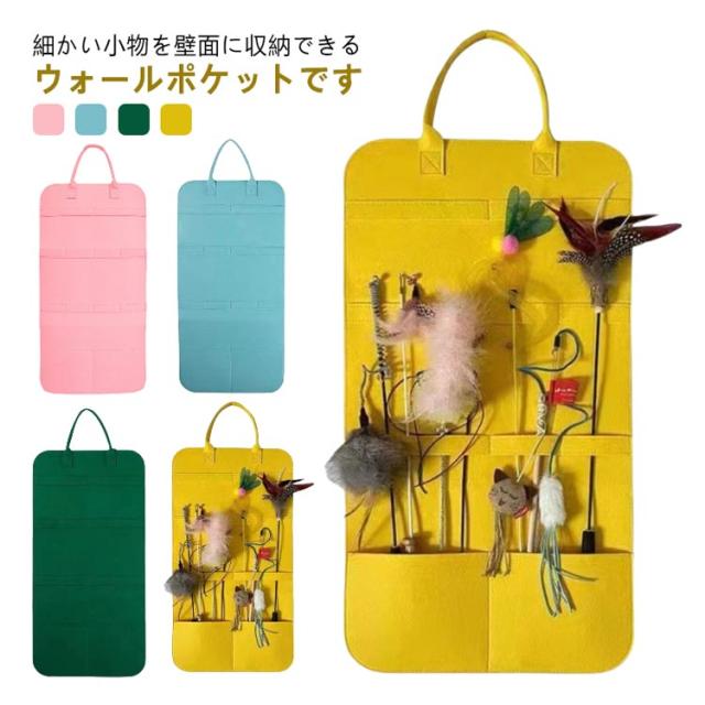 ねこじゃらし収納 猫じゃらし 吊り下げ ハンギングバッグ 杖ホルダー おもちゃ専用 壁掛け収納ポケット 折りたたみ式 ポケット ねこじゃらし収納 ウォールポケット 壁掛け おしゃれ インテリア雑貨 フェルト シンプル ピンク イエロー ブルー